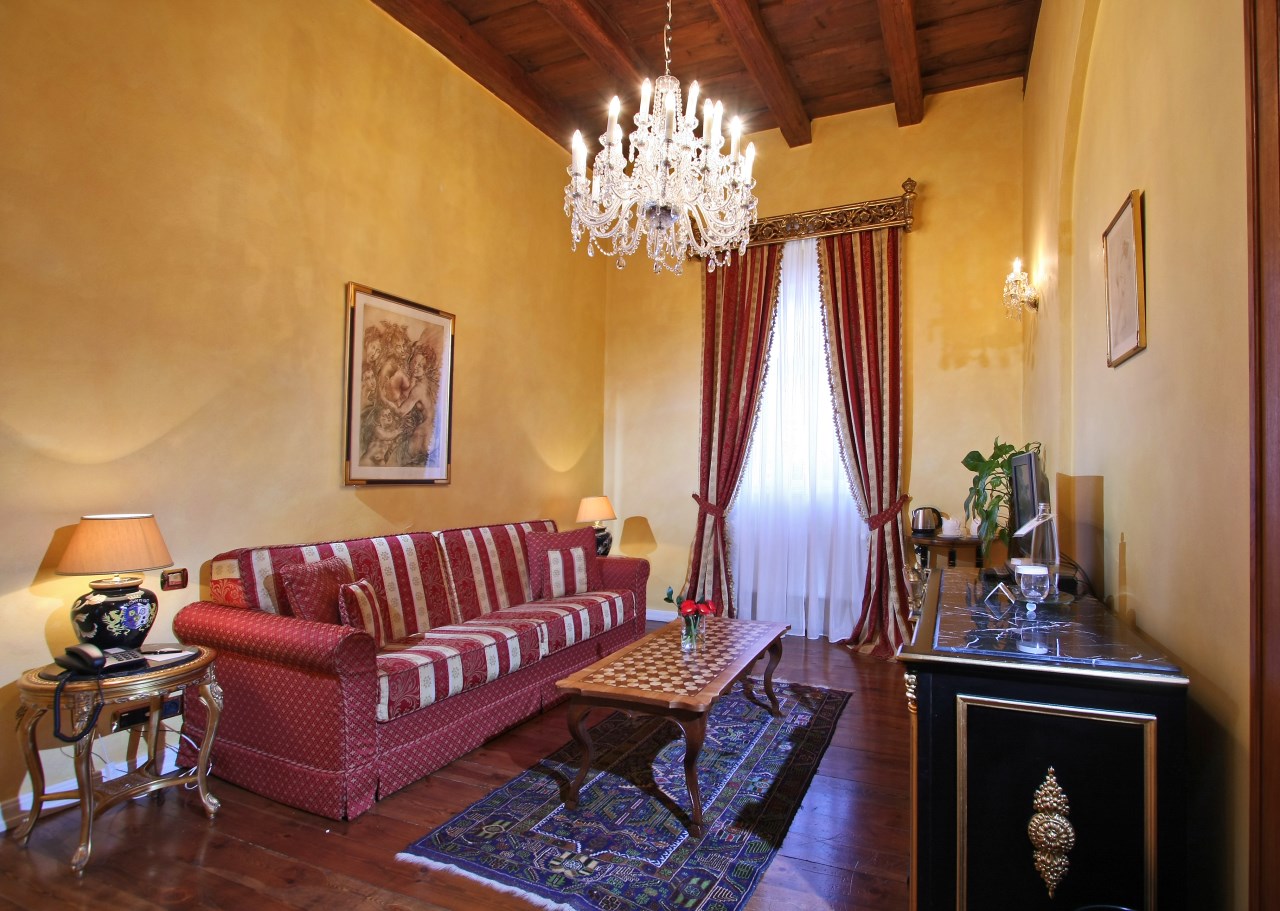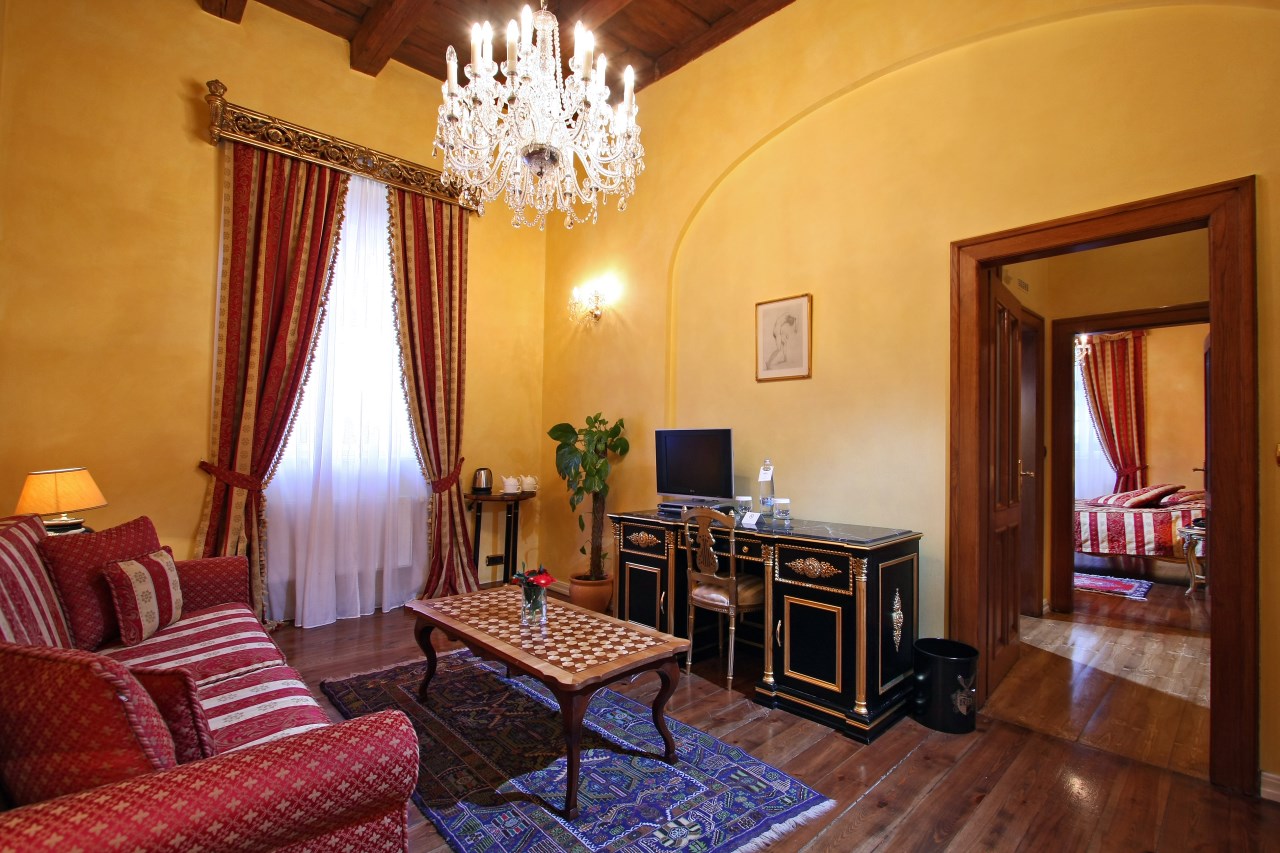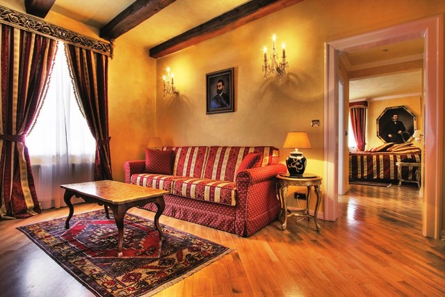Each floor of the Alchymist Nosticova Palace houses one Family Suite. The Family Suites are good-sized rooms of 45 square metres that can easily accommodate three adults or a family with children. All Family Suites feature a sitting area or a separate living room, a queen-size bed and a sofa bed. The Tycho de Brahe Family Suite on the First Floor is named after the Danish astronomer and alchemist who came to Bohemia in 1597 when invited by Emperor Rudolf II to become the official imperial astronomer. The Tycho de Brahe Family Suite has a separate living area and a bedroom. The living area features a wooden-beamed ceiling, whilst the bedroom has a painted, vaulted ceiling. This Family Suite offers views across the Vltava River, the Garden Restaurant and Kampa Park.