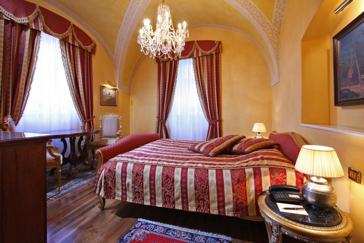 The Blanche of Valois Family Suite on the Third Floor is a beautiful, romantic room named after the first wife of Charles IV, who married him at the age of 7 in 1323. They started living as husband and wife in 1334 when Blanche came to join Charles IV in Prague, accompanied by her French entourage. The Blanche of Valois Family Suite has a separate bedroom and living space; between the rooms there is a bathroom with a bath, toilet and bidet. The Family Suite offers excellent views over the Vltava River, the Garden Restaurant and Kampa Park.